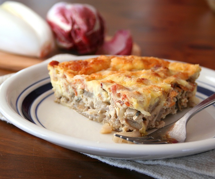 I LOVE this quiche and so do my 8 & 11-yr olds. We love eggs and my 11 yr old daughter said to make this every day during Spring break. It is an expensive quiche to make, as all the ingredients I bought were pretty expensive – organic stuff and I used uncured no nitrite beef bacon. I didn't even know what an endive looked like until this recipe.