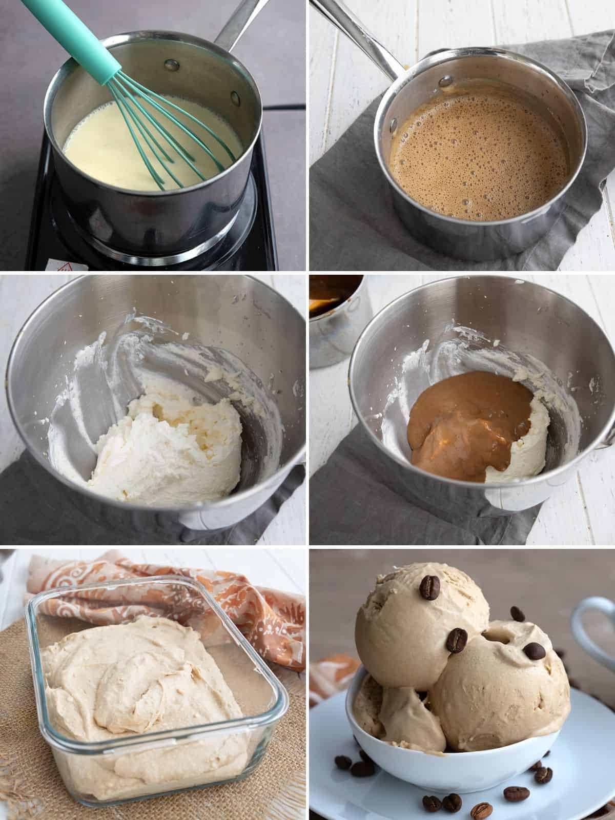 I own a ridiculous amount of kitchen gadgetry, including a very good ice cream maker. But I love experimenting with different techniques, and when I started seeing no-churn recipes all over the internet, I had to give it a try. It was so simple! All I had to do was modify my Keto Condensed Milk recipe slightly, whisk in some coffee, and fold in the whipped cream.