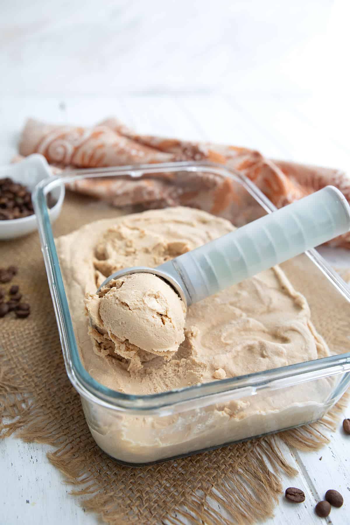 This keto coffee ice cream recipe has 2.2g of carbs per half cup serving.